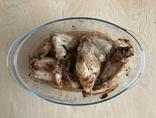 Кролик, запеченный с морковью в духовке — это блюдо, вобравшее в себя традиции русской кухни, где сочетаются простота приготовления и богатство вкусов. Кроличье мясо ценится за свою нежность и диетические свойства, а морковь добавляет легкую сладость и делает текстуру более насыщенной. Соусы — соевый, терияки и карри — создают интересный баланс вкуса, соединяя восточные мотивы с традиционными русскими рецептами. Оливковый майонез добавляет пикантности и мягкости. После запекания мясо становится невероятно нежным, пропитанным ароматами специй, а морковь приобретает карамельные нотки. Блюдо идеально подходит для уютных семейных ужинов или праздничных застолий. Украшенная свежей зеленью, эта запеканка не только радует вкусом, но и выглядит аппетитно, приглашая к дегустации.