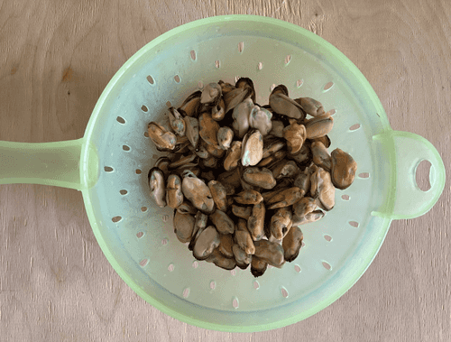 Достать из духовки мидии и остудить. Подавать с пастой, украсив веточкой зелени.