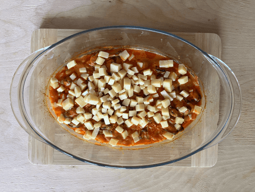 Достать из духовки мидии и посыпать сверху сыром. поставить в духовку еще на 10 минут.