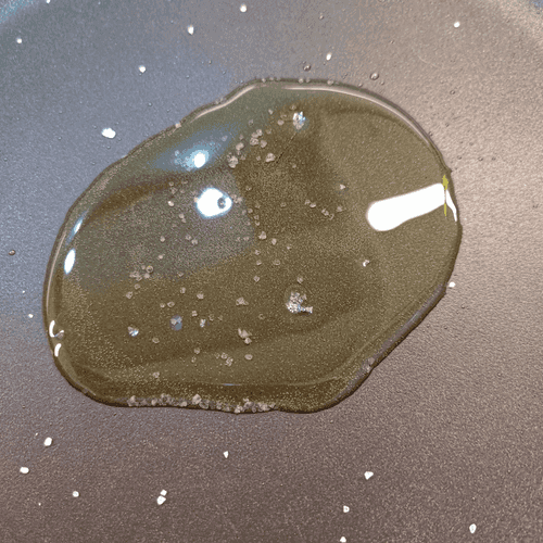 На сковороде разогреть оливковое масло с щепоткой крупной соли.