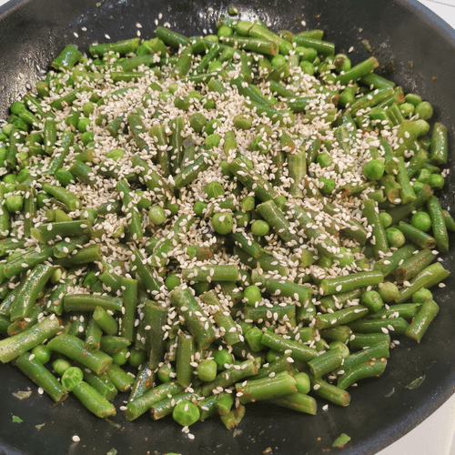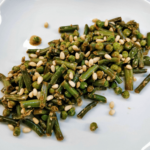 Рагу из стручковой фасоли и горошка — это яркое сочетание простоты и глубины вкуса. Этот авторский рецепт объединяет свежесть зелёных овощей с насыщенными нотами кунжута, соевого соуса и оливкового масла. Лёгкая пикантность от чили и богатство кедровых орешков создают удивительный баланс вкусовых ощущений. Такой гарнир идеально подойдёт к запечённому мясу или рыбе, а также может стать самостоятельным лёгким ужином. Блюдо берёт начало в гастрономической творческой кухне, где акцент ставится на гармонию текстур и природную сладость овощей. Приготовление занимает считанные минуты, а результат — насыщенный, ароматный и полезный. Кедровые орешки завершают композицию, добавляя мягкость и ореховую глубину. Это рагу — отличный пример того, как простые ингредиенты могут заиграть новыми красками в неожиданном сочетании.