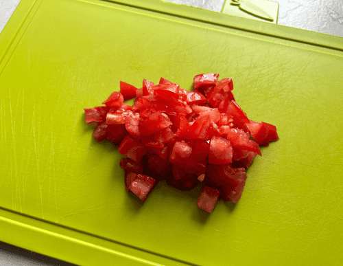 Помидор нарезать кубиками.