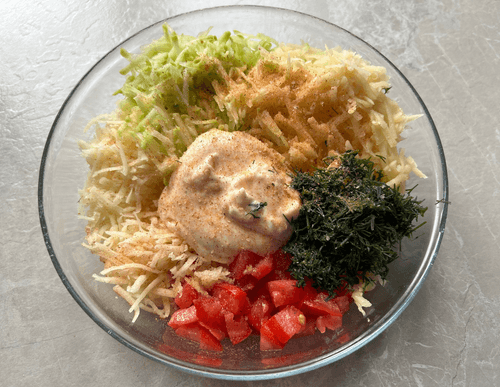 Добавить майонез, укроп, соль и любые специи.