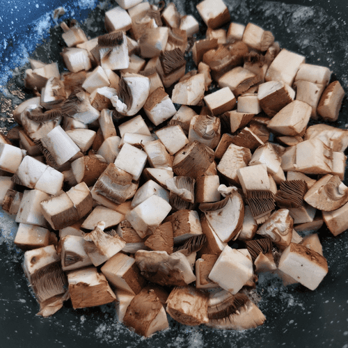 Грибы нарезать небольшими кубиками.