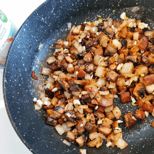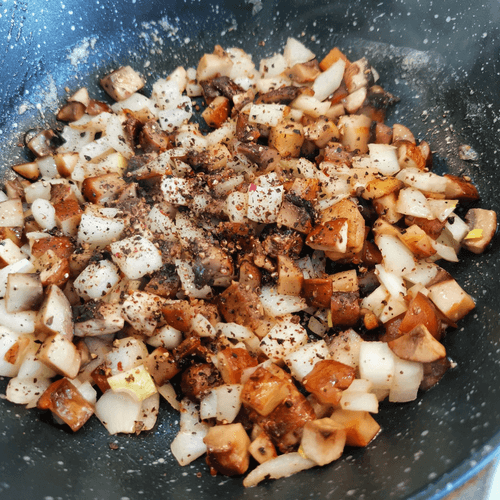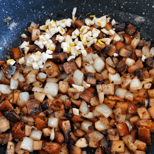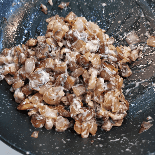Через 2 минут добавить его в грибы. Перемешать.
