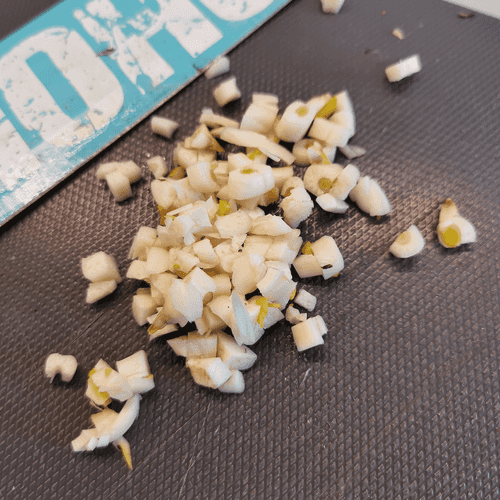 Некрупно нарезать чеснок.