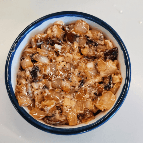 Тартар из грибов — это изысканное блюдо авторской кухни, воплощающее гармонию простых ингредиентов и тонкую игру вкусов. Нежные шампиньоны, обжаренные в смеси сливочного и оливкового масел, приобретают насыщенный аромат, который подчеркнут сладковатой ноткой лука и пикантностью чеснока. Смесь молотых перцев добавляет теплоту и глубину, а морская соль идеально балансирует вкус. Легкая кремовая текстура достигается добавлением майонеза, что делает тартар нежным и бархатистым. Это блюдо подают охлажденным, позволяя ароматам полностью раскрыться. Тартар из грибов станет прекрасной закуской на праздничном столе или элегантным дополнением к бокалу белого вина. Вдохновленный традиционной французской кухней, он предлагает новый взгляд на классический тартар, привнося в него теплую, уютную гастрономическую нотку.