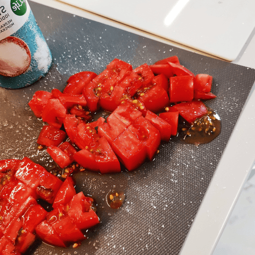 Помидоры нарезать крупными кубиками. Посолить.