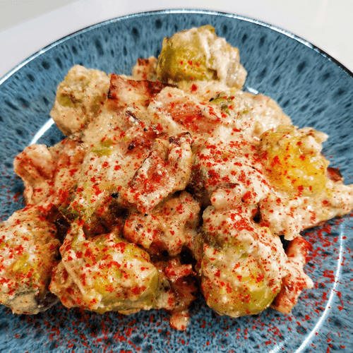 Овощное рагу с бурратой — это изысканное сочетание простоты и утонченности. Вдохновленное авторской кухней, это блюдо гармонично объединяет нежную брюссельскую капусту, ароматную грудинку и кремовую буррату. Приготовление начинается с золотистого обжаривания грудинки, раскрывающего ее богатый вкус, а затем капуста томится в сливочном соусе, приобретая мягкость и насыщенный аромат. Финальный аккорд — запекание с пармезаном и бурратой, что придает блюду шелковистую текстуру и изысканную тягучесть сыра. Приправленное чили и смесью перцев, оно раскрывает аппетитную пикантность и насыщенность. Овощное рагу с бурратой — идеальное сочетание деревенской простоты и гурманской изысканности, способное удивить и порадовать даже самых требовательных ценителей.