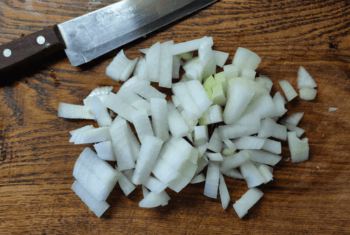 Лук нарезать достаточно мелко.