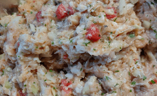 Соединить все ингредиенты в одной миске и тщательно перемешать, посолить по вкусу, добавить специи.