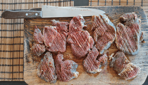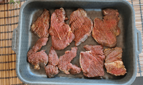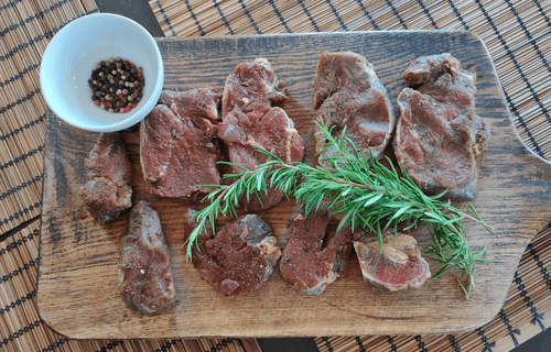 Нарезать медальонами говяжью вырезку, посыпать любимыми специями, затем острой стороной ножа отбить мясо или просто сделать неглубокие частые надрезы.