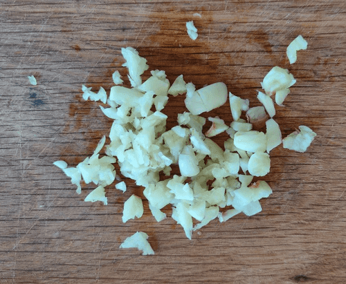 Нашинковать чеснок кусочками среднего размера.