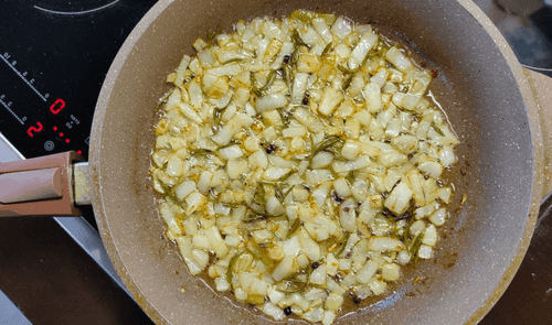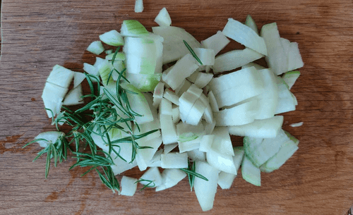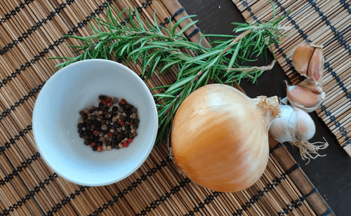 Взять лук, оставшийся розмарин, перец и немного чеснока.