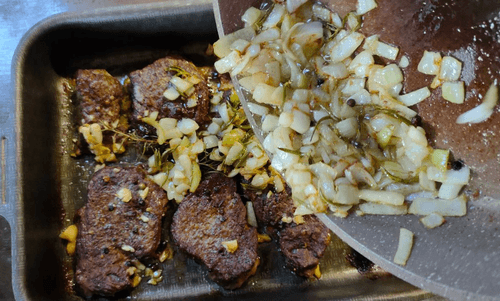 Говядина с розмарином и луковой заправкой