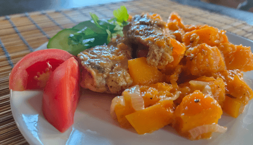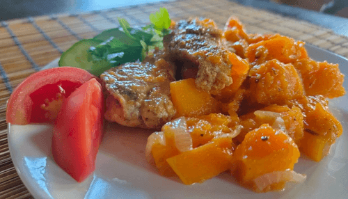 Гарнир из тыквы с луком с куриным филе