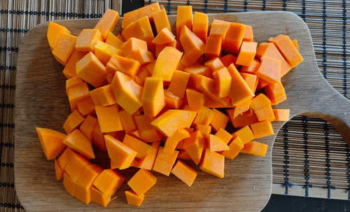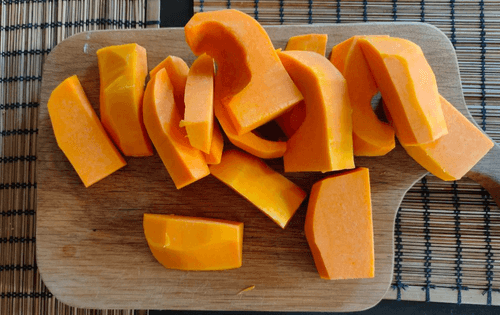 Очистить тыкву от кожуры и нарезать на ломтики.