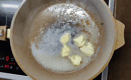На сковороде растопить сливочное масло.