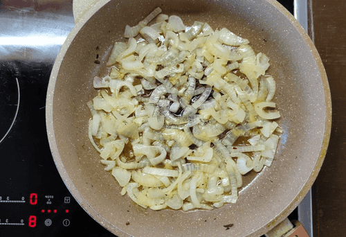Далее слегка обжарить лук.