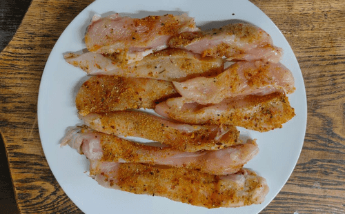 По желанию приправить специями кусочки филе.