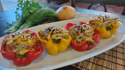 Фаршированные перцы с корнишонами и домашним сыром – это яркий представитель болгарской кухни, наполненный свежестью и сочностью. Болгарцы издревле славятся любовью к овощам и сырам, и это блюдо – воплощение их гастрономической культуры. Сладкий перец, наполненный ароматной смесью куриного фарша, пикантных корнишонов и нежного домашнего сыра, приобретает насыщенный вкус и аппетитную текстуру. Запекание делает его мягким, но сохраняет легкую хрусткость, придавая гармонию вкусу. Этот рецепт прекрасно подходит как для семейного ужина, так и для праздничного стола. Блюдо можно дополнить свежей зеленью, легким соусом на основе йогурта или просто подать горячим, наслаждаясь контрастом нежного сыра и пикантных овощей.