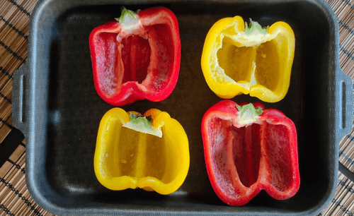 Вырезать из перцев семена и положить в форму для запекания.