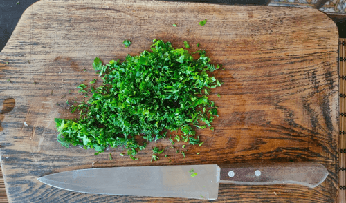 Мелко нарезать зелень.