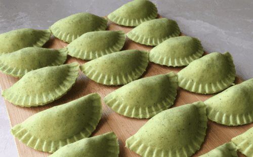 Шпинатные вареники – это истинное украшение украинской кухни, впитавшее в себя традиции и современные вкусовые тенденции. Благодаря шпинату, тесто приобретает нежный зелёный оттенок и богатый растительный аромат. Внутри скрывается мягкая начинка из картофельного пюре, создающая гармоничное сочетание с эластичным тестом. Эти вареники не только радуют глаз, но и несут в себе пользу – шпинат обогащает блюдо витаминами и минералами. Особенно хороши они в сметане или с ароматными травами. История рецепта уходит корнями в украинские деревенские традиции, где зелень часто использовали для придания уникального вкуса привычным блюдам. Сегодня шпинатные вареники – это не просто еда, а гастрономическое удовольствие, которое можно приготовить в уютной домашней обстановке, наслаждаясь процессом создания кулинарного шедевра.