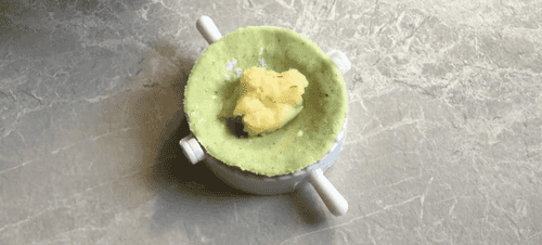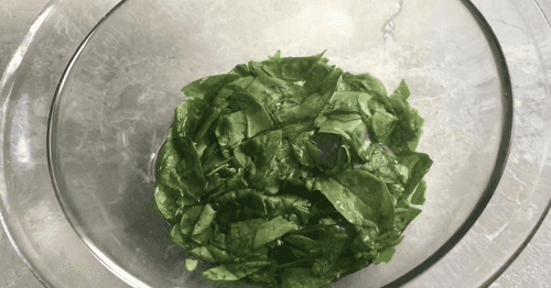 Залить шпинат кипятком, накрыть тарелкой и оставить на 10 минут.