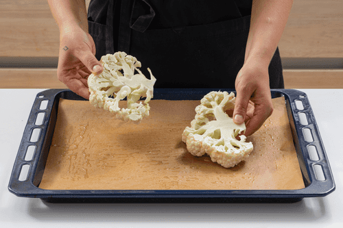 Кочан разрезать вдоль кочерыжки на стейки толщиной 2–3 см.