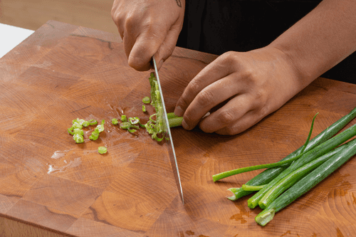 У зеленого лука отрезать только белую часть, мелко порубить.