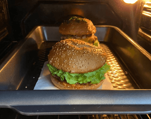 При правильной готовке булочки станут хрустящими, а бургер теплым. Приятного аппетита!