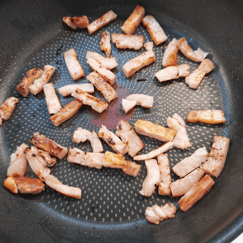 Выложить ломтики в разогретую на сковороде 1 чайную ложку оливкового масла.
