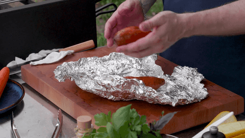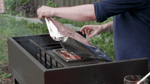 Поставить скумбрию на решетку и накрыть фольгой, оставив пространство для поступления дыма.