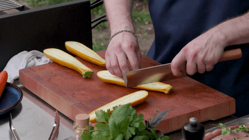 Кабачки разрезать пополам и сделать на внутренней стороне небольшие надрезы сеткой.