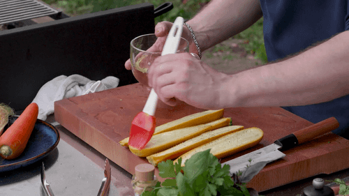 Посолить, поперчить и смазать кабачки растительным маслом.