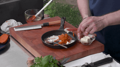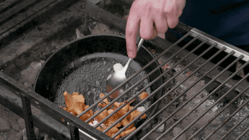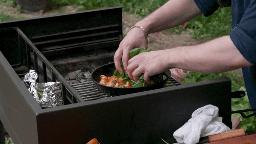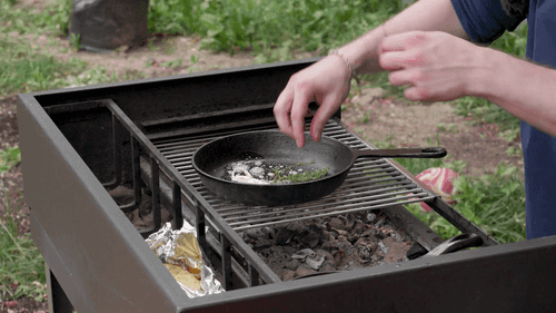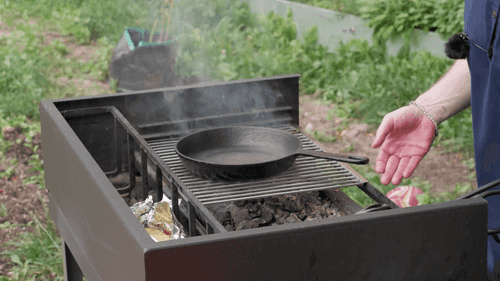 Разогреть чугунную сковороду прямо на углях.
