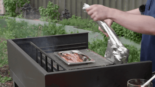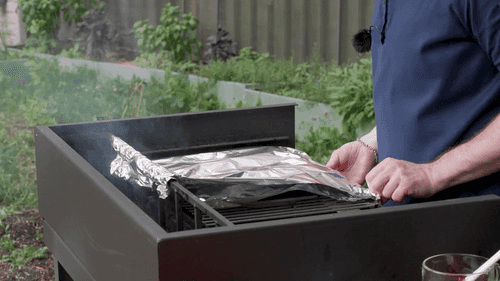 Накрыть фольгой, оставив пространство для поступления дыма. Коптить около 10 минут или до готовности рыбы.