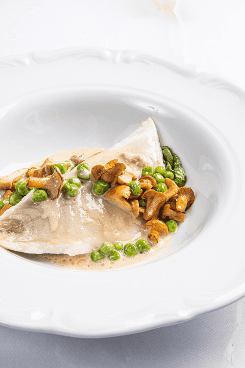Филе дорады со шпинатом и лисичками