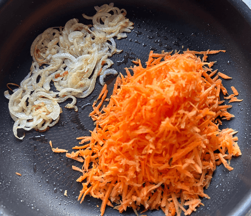 Обжаривать морковь с луком в течении 2 минут.