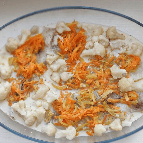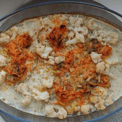 Филе трески с цветной капустой — изысканное блюдо русской кухни, воплощающее гармонию нежного вкуса рыбы и кремовой текстуры овощей. Исторически треска была популярна в России благодаря доступности и питательным свойствам, а сочетание с цветной капустой добавляет легкости и утонченности. Запеченная в сливках с ароматными прованскими травами, она приобретает насыщенный вкус с легкими травяными нотками. Лук и морковь, обжаренные до золотистой нежности, создают аппетитное основание, усиливающее глубину вкуса. Это блюдо идеально подходит для семейного ужина или праздничного застолья, радуя богатством аромата и приятной текстурой. Подавать рекомендуется с зеленью, которая освежает и подчеркивает естественную сладость ингредиентов.