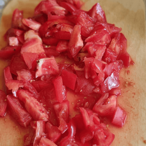 В это время помидоры нарезать небольшими кубиками.