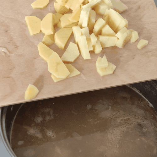 Картофель отправить в кипящий бульон.