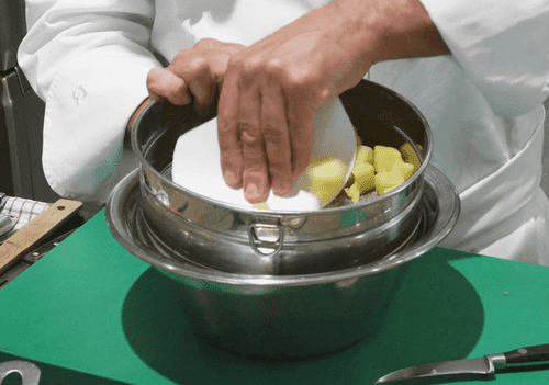 Снять соус с огня, дать немного остыть и настояться, затем измельчить соус в блендере и пропустить через сито.