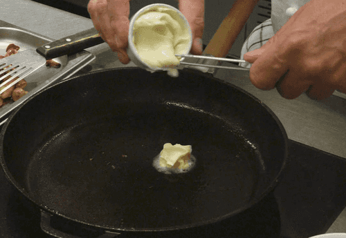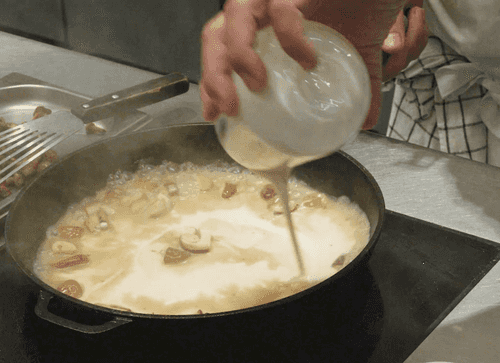 Приготовить соус. Протереть салфеткой сковороду после грибов, добавить кусочек сливочного масла и растопить.