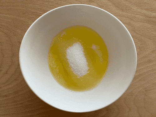 В масло добавить 0,5 стакана белого сахара и тщательно перемешать.