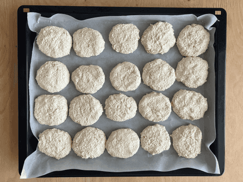 Из творога сформировать творожники и выложить на противень, застеленный пергаментом. Поставить в предварительно разогретую до 200 градусов духовку.