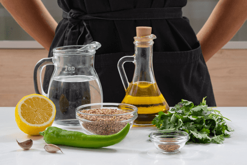Гречка с ближневосточным соусом схуг — это смелое сочетание классики славянской кухни с яркими нотами Востока. Гречневая крупа, известная своим насыщенным ореховым вкусом и питательностью, становится основой этого блюда. Схуг, традиционный острый соус Йемена, привносит свежесть кинзы, остроту чили и пряную глубину кумина. Легкий лимонный оттенок освежает вкус, а оливковое масло придает соусу бархатистую текстуру. Это блюдо идеально подойдет тем, кто ищет новые гастрономические впечатления, ведь оно объединяет тепло домашней еды с экзотикой восточных специй. Подавая горячую гречку с ароматным схугом, вы получите насыщенное, согревающее и необычное блюдо, которое прекрасно сочетается с мясными или овощными гарнирами.