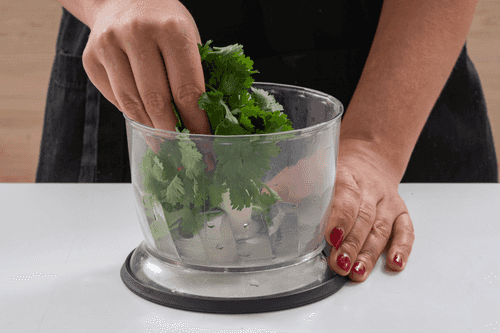 У кинзы оборвать листья и сложить в блендер.