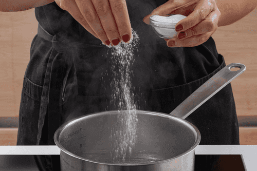 Вскипятить воду в кастрюле и посолить.